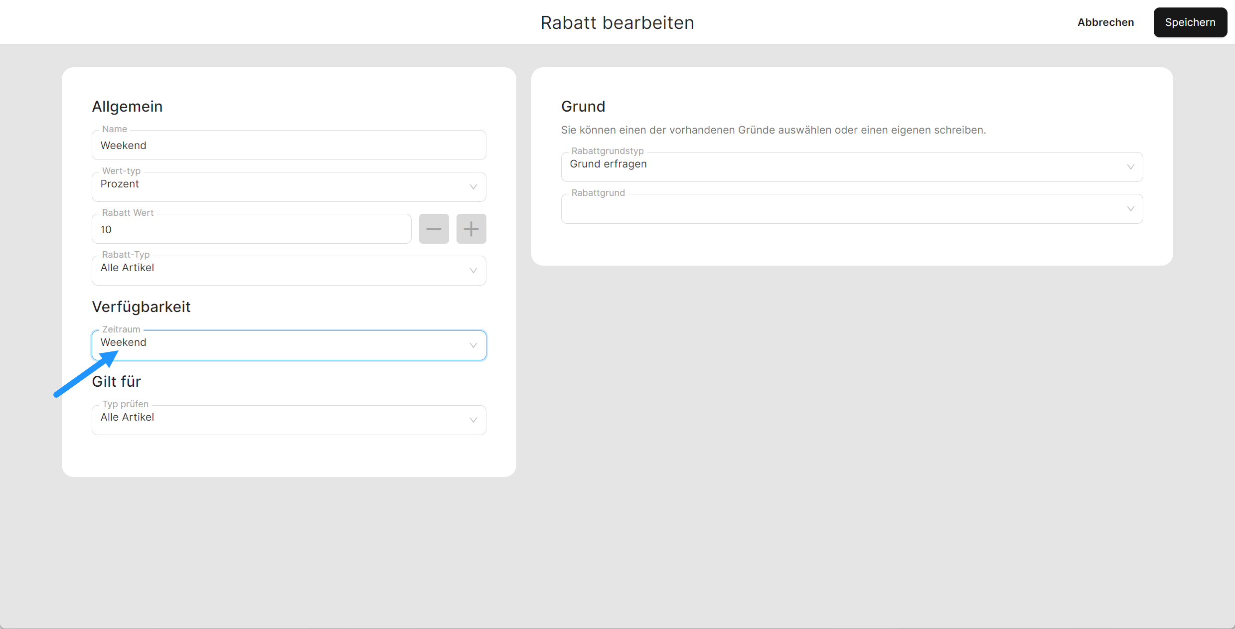 Zeitraum auf Rabatt anwenden