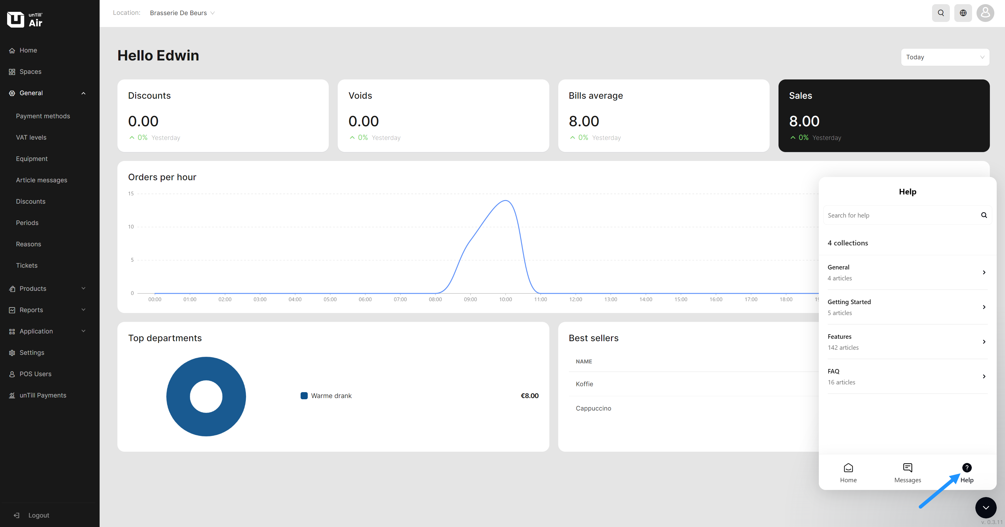 In the unTill Air Back Office, you can view the articles of this manual without switching to another browser tab, so directly on the webpage of the Back Office.