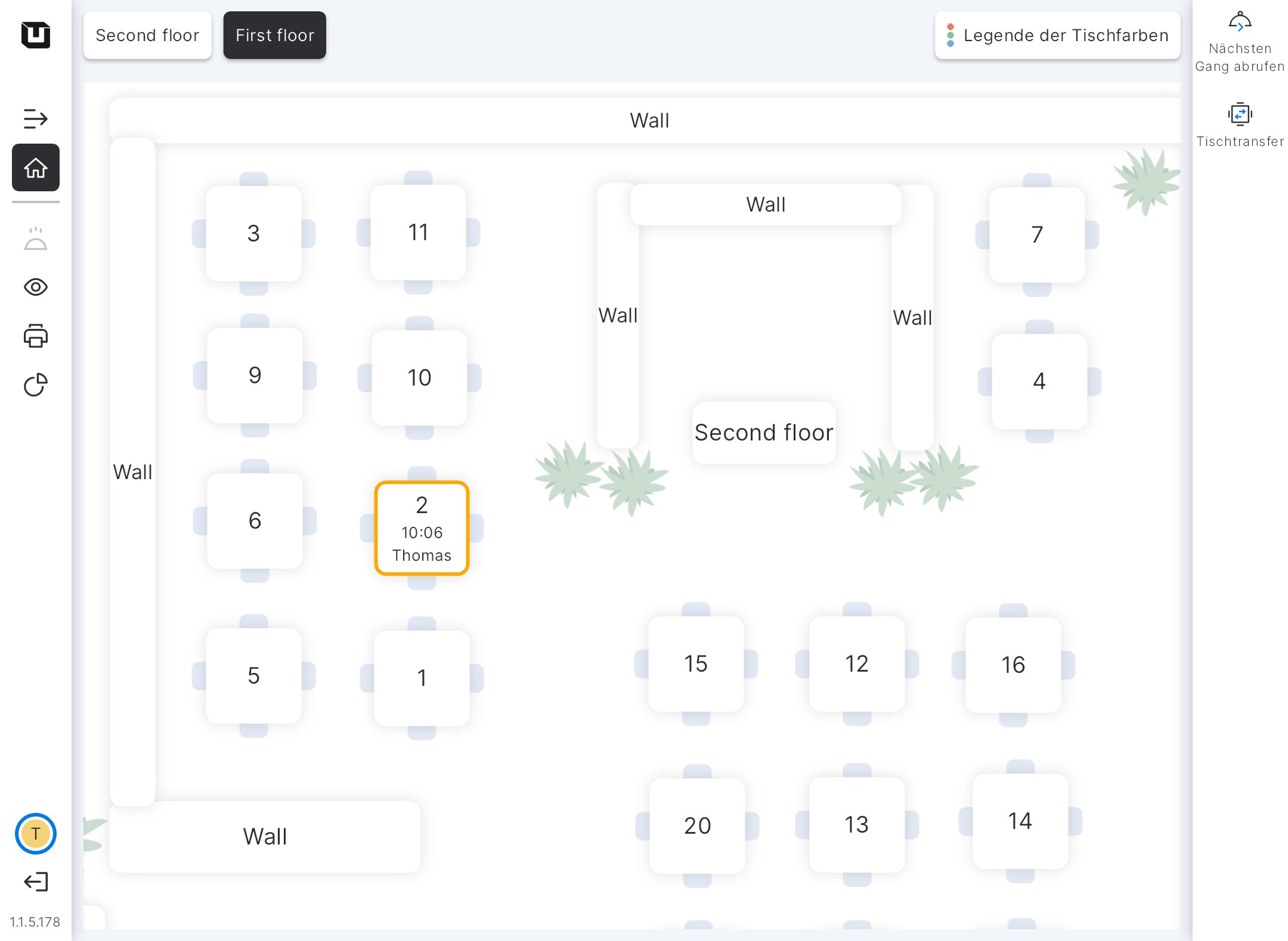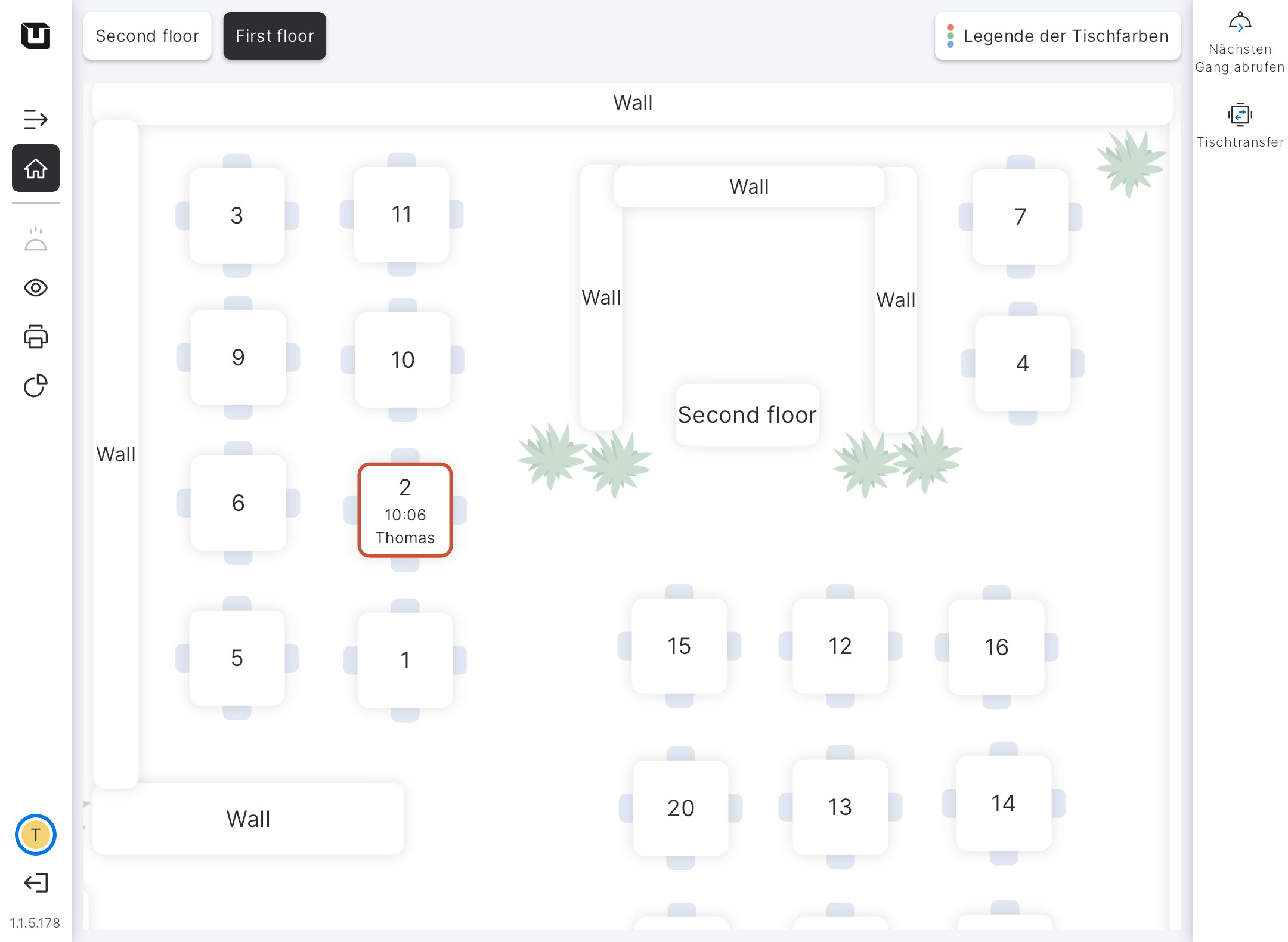 Jetzt ist der 2. Tisch rot markiert (kann auch eine andere Farbe haben), was bedeutet, dass die Vorspeise hier serviert wird.