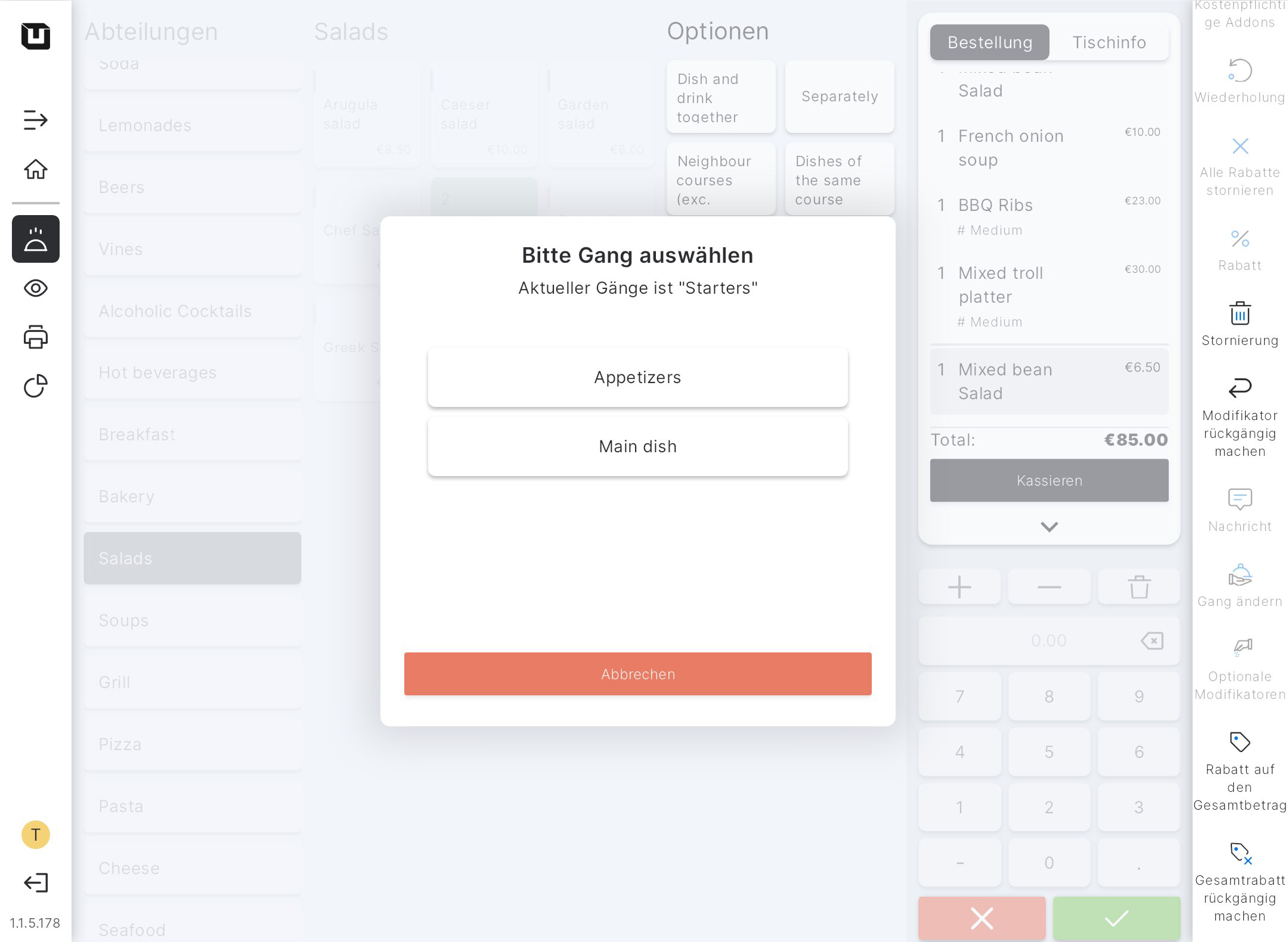 Um die Gerichte so zu servieren, wie es der Kunde wünscht, muss der POS-Nutzer dies tun:
