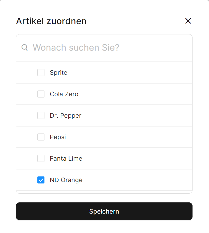 - Weisen Sie dieser Abteilung die gewünschten Artikel zu.