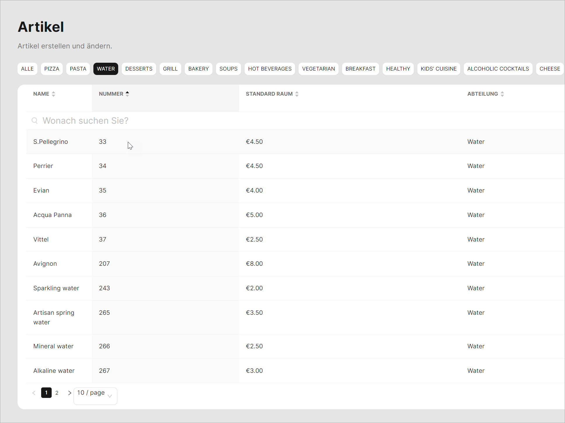 Wenn Sie einen bestimmten Artikel auswählen, sei es für einen Kombi-Deal, ein Menü oder einen anderen Zweck, können Sie ihn leicht über die Suchfunktion finden.
