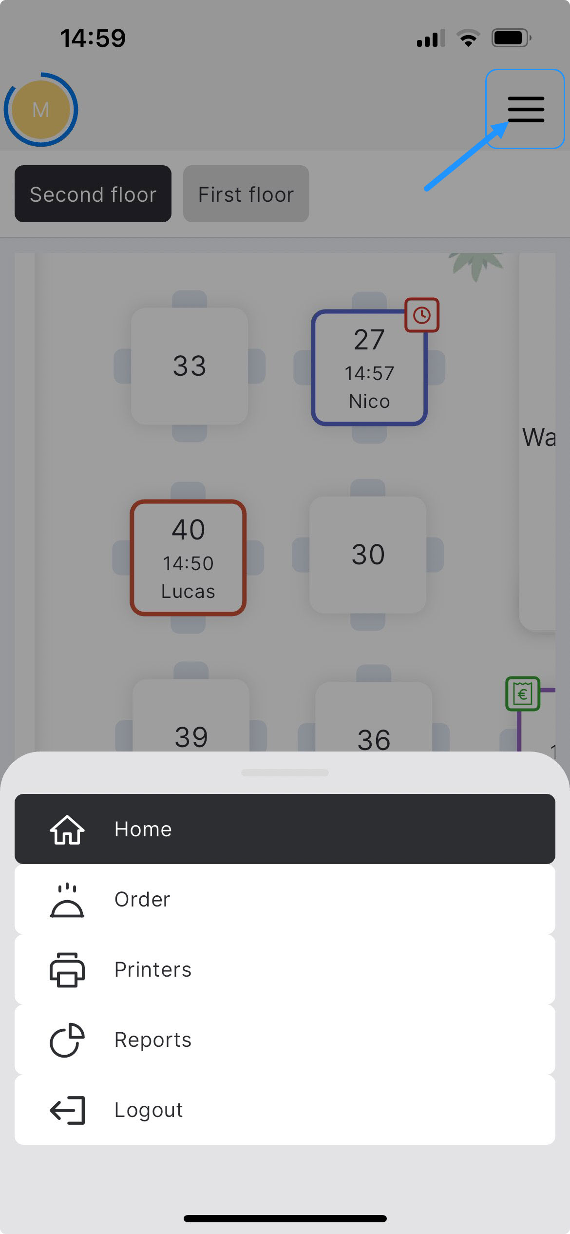 La sección principal donde se muestran las mesas y sus estados en los móviles es distinta a la de las tablets.