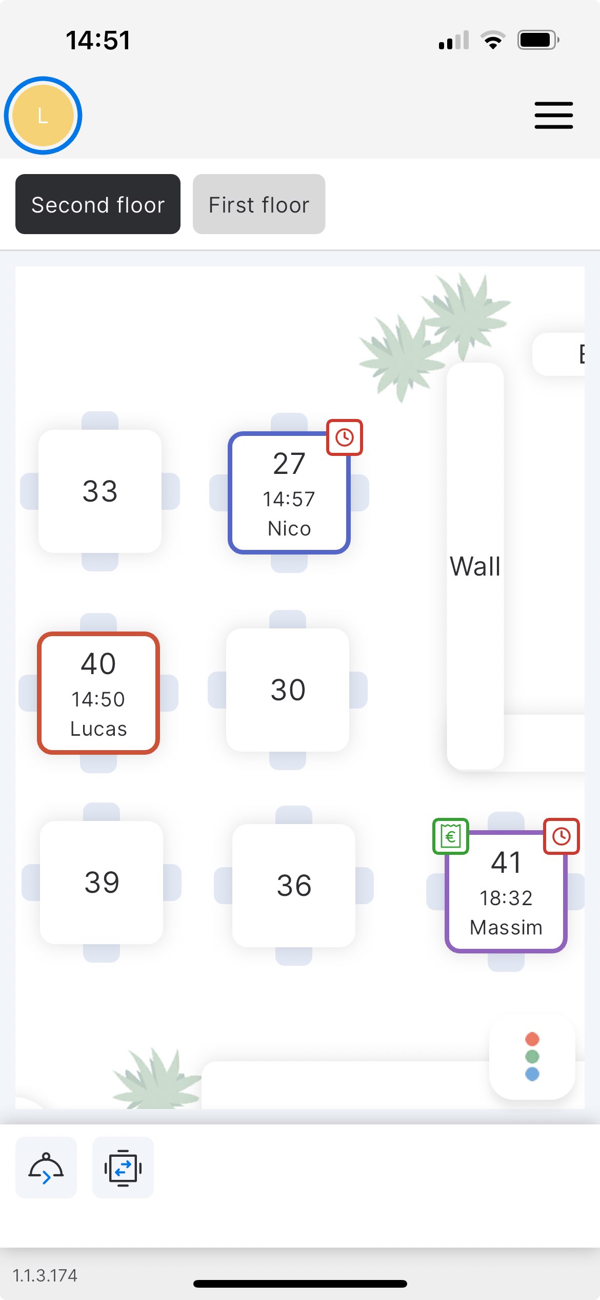 Si necesitas acceder a la Guía de colores de mesas, pulsa el botón con tres puntos situado en la esquina inferior derecha.