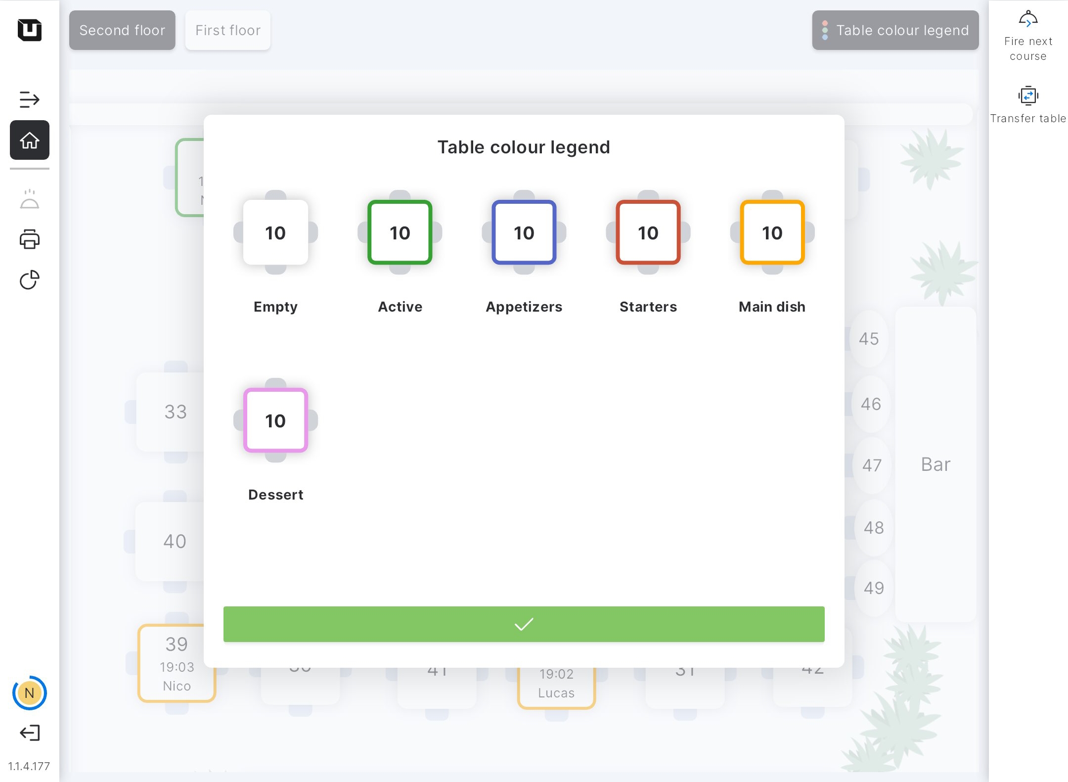 Puedes ver qué representa cada color en la Guía de colores de mesas situada en la esquina superior derecha.