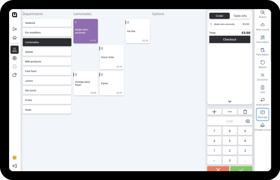 Article message will be displayed in the POS under the specific item and printed on the order ticket in order to inform the kitchen staff about the special requirements or preferences of the customer.