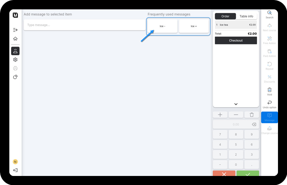 POS Users can type a custom message manually, but now, after saving Article messages, you may see them in the 'Frequently used messages' section.
