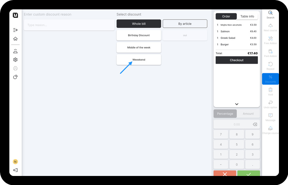 - Tap on the 'Discounts' button.