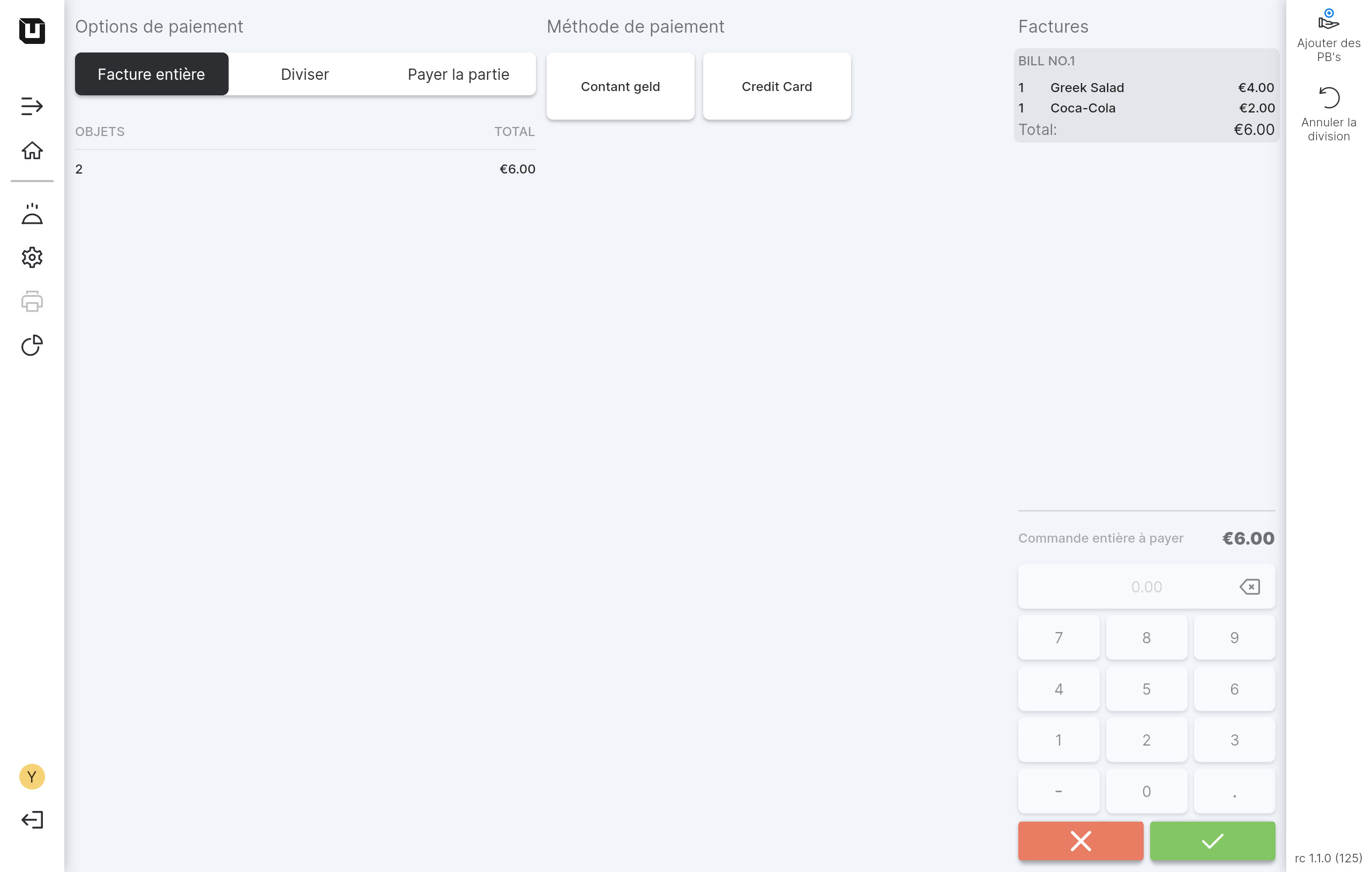 To accept the card payment methods and use the terminals integrated into the POS, you can request access to unTill Payments.