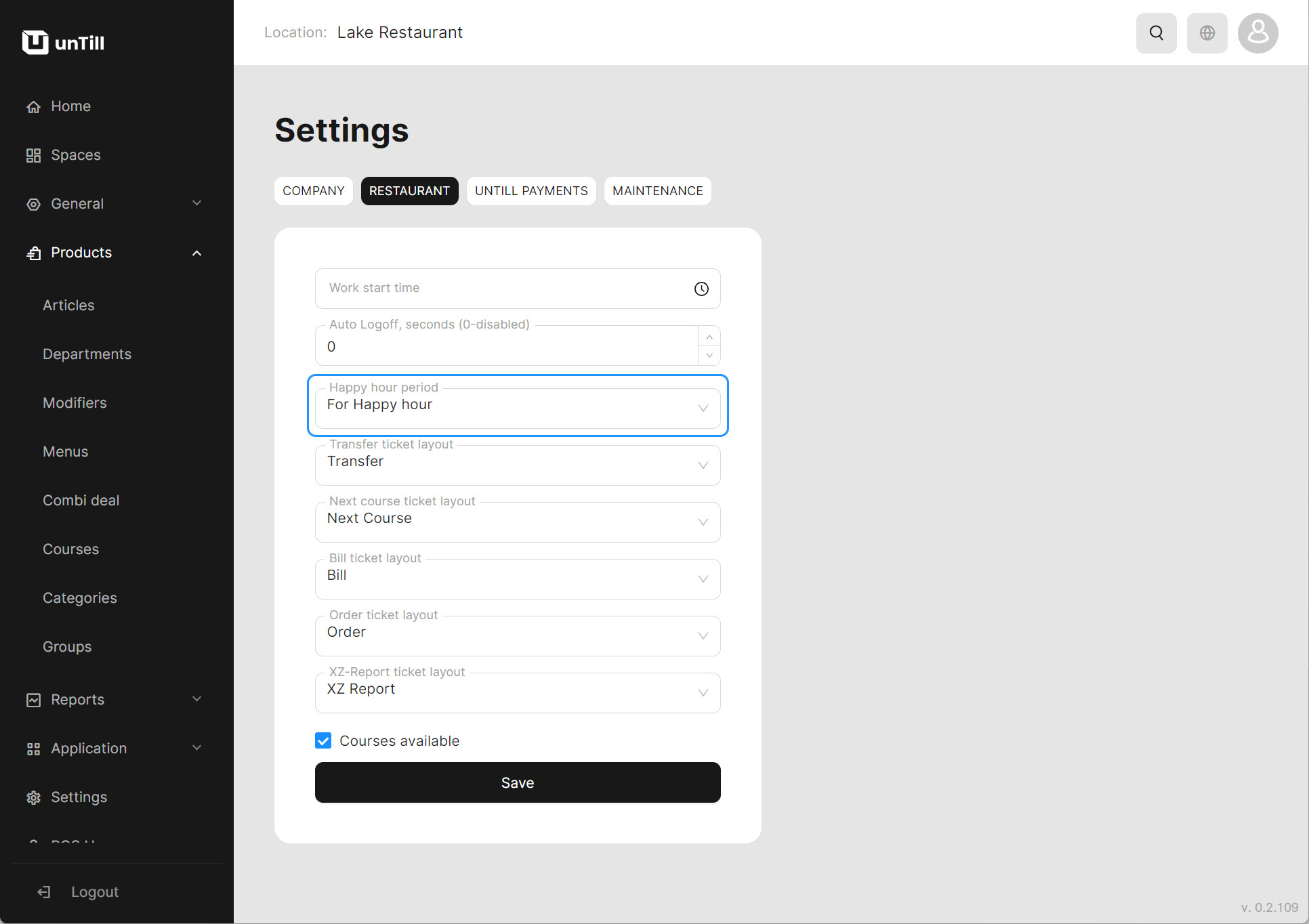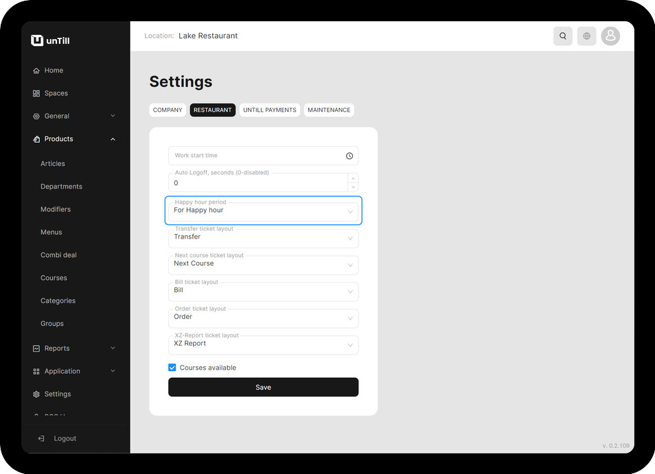You can enable the Happy hour feature in two ways: either when you initially set up a newly created location or later in the Location Settings, where you can select an existing Period as the Happy hour period.