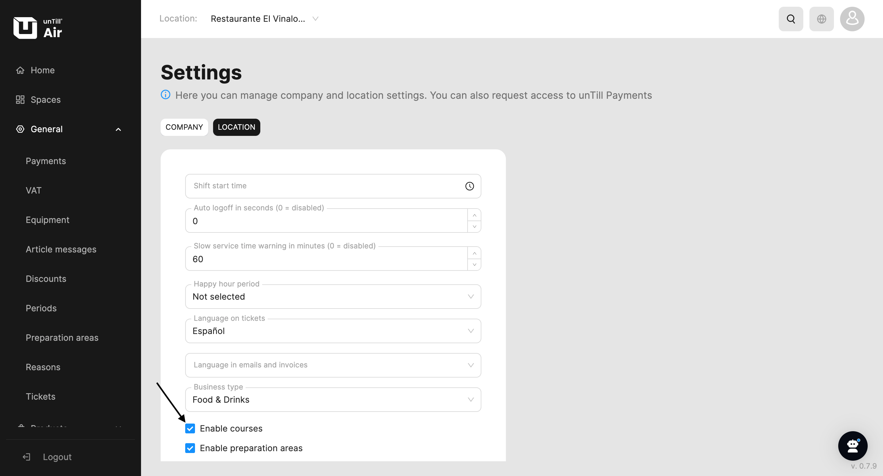 To enable this function, please go to Location settings and check the 'Enable preparation areas' checkbox. Once enabled, the corresponding section will appear in 'General' in the Back Office, allowing you to create and manage preparation areas.
