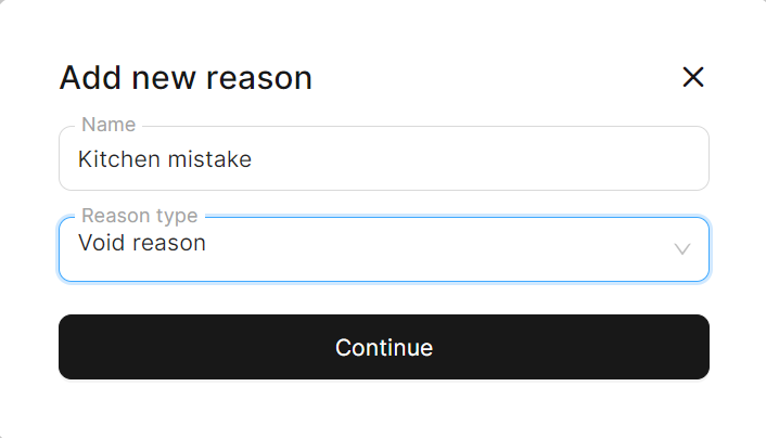 Note: If you haven't configured any Reasons and have removed the default ones at the location when applying a Discount or performing a Void in the POS, you will need to manually type the Reason without the option to select a preconfigured one.