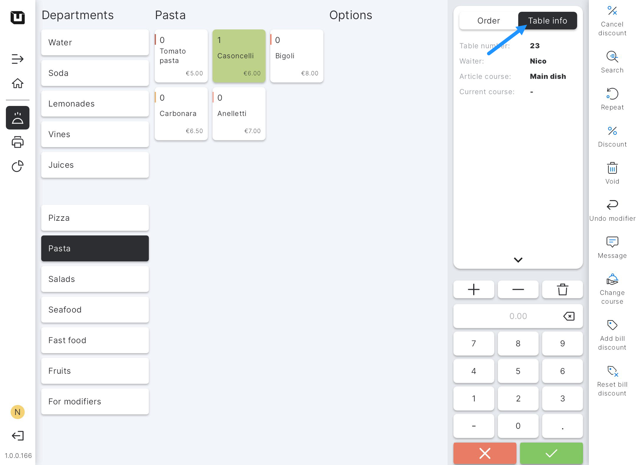 - Above the order list, you will see two tabs: 'Order' and 'Table info'.