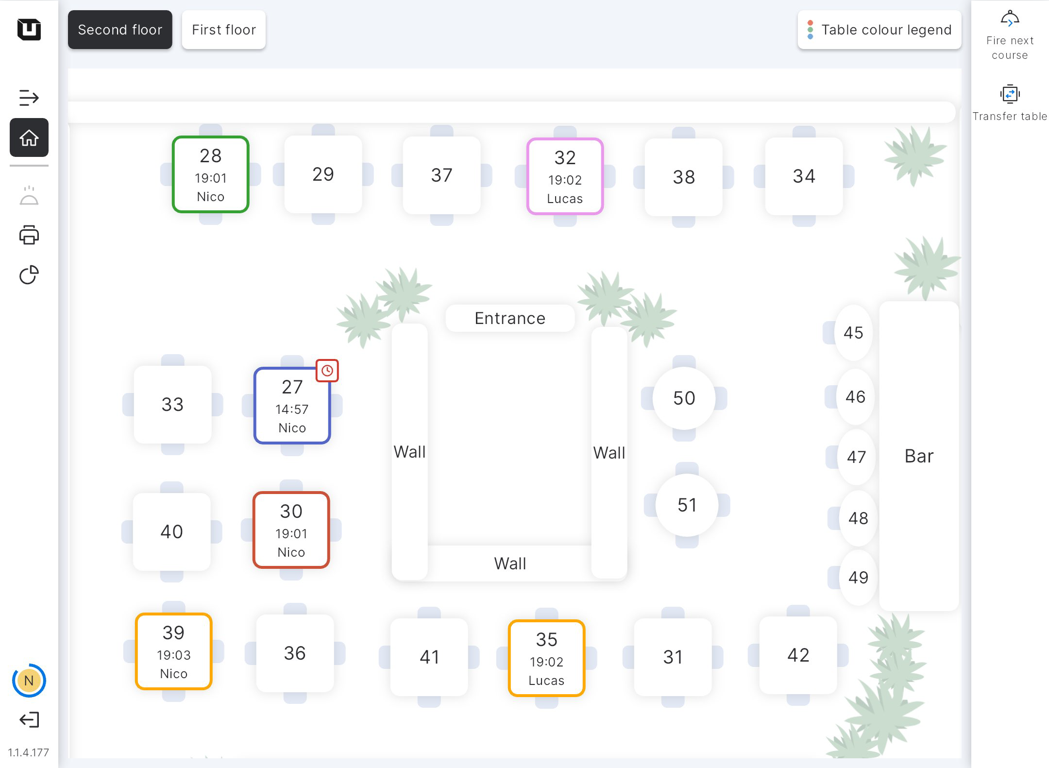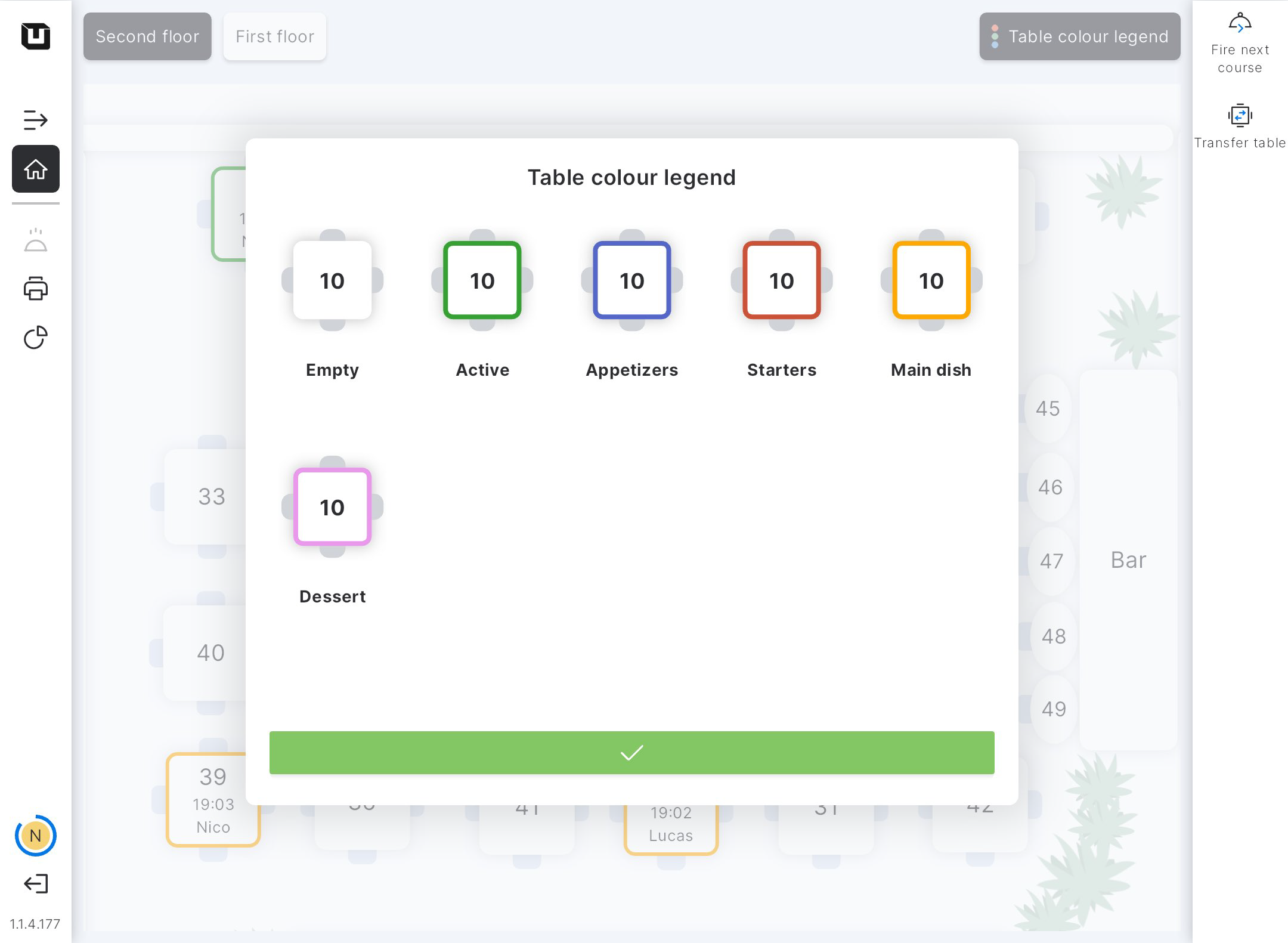 The Table colour legend can serve as a reminder to the POS User about the currently active Course.