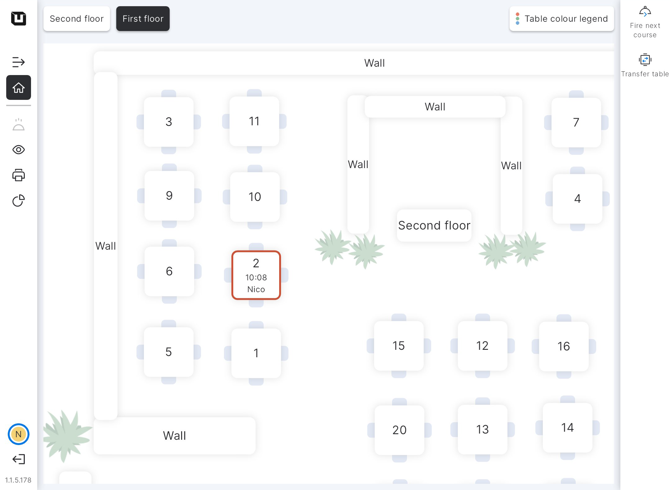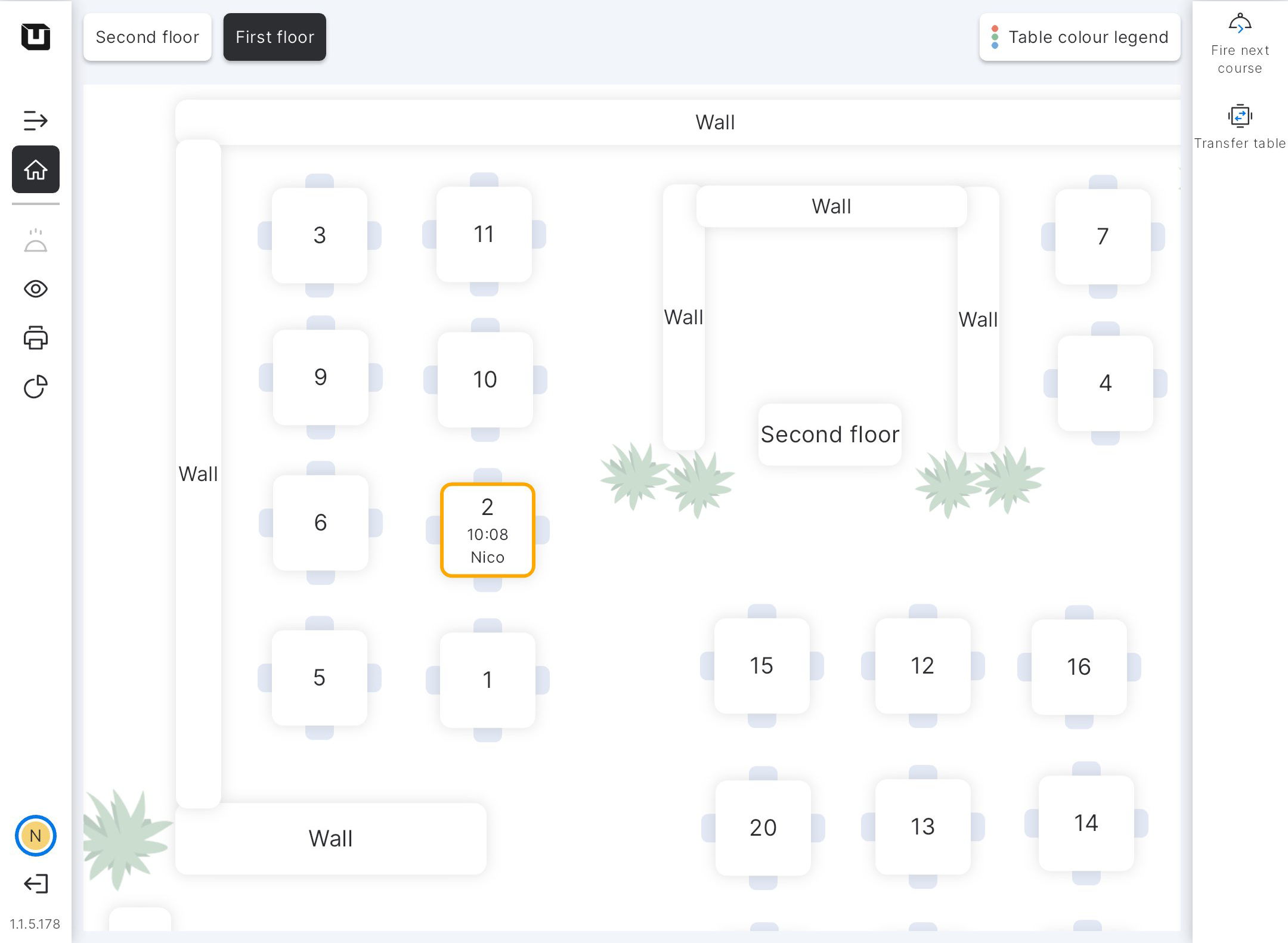 Now, the 2nd table is highlighted in red (can be other colours), indicating that the starter is being served here.