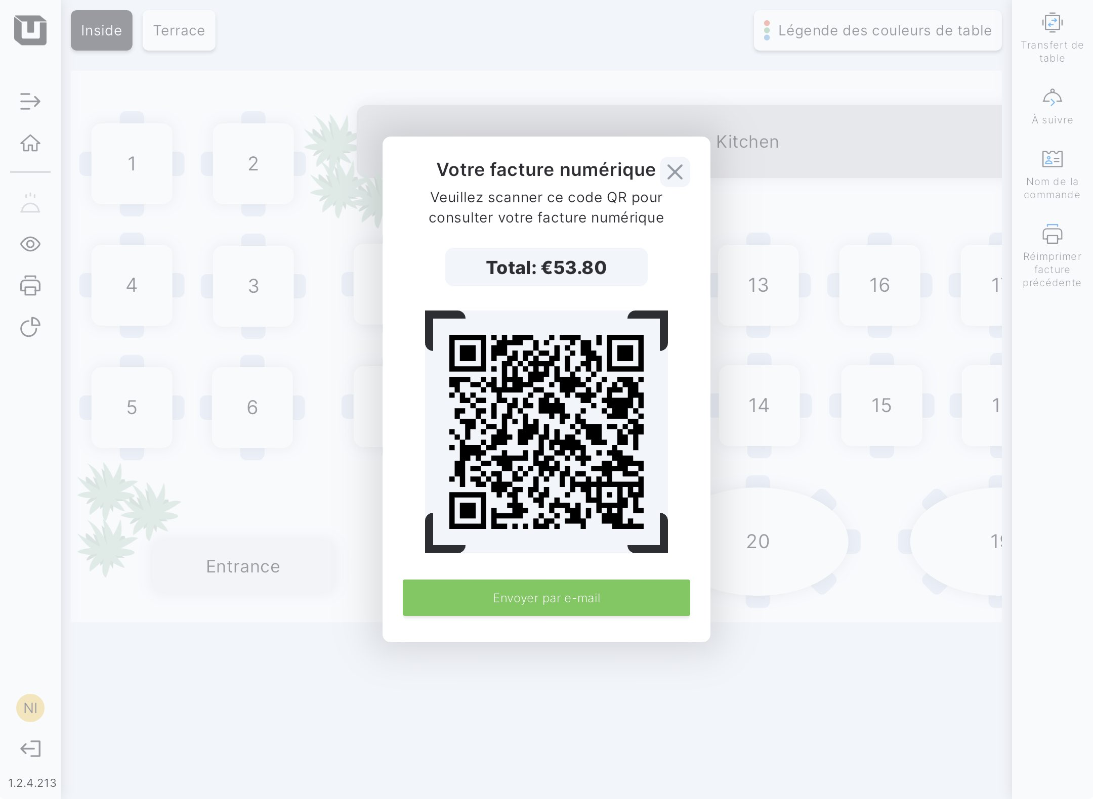 Maintenant, comme vous avez choisi de n'imprimer que les factures, vous ne verrez pas de pop-up avec un code QR et un champ d'email. Toutes les factures seront imprimées sur l'imprimante de factures spécifiée dans vos paramètres d'écran.
