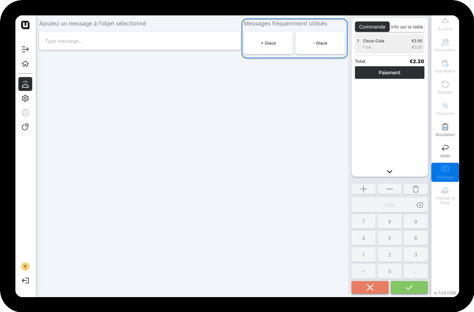 Utilisateurs de PDV peuvent saisir manuellement un message personnalisé, mais maintenant, après avoir enregistré les Messages de l'Article, vous pouvez les voir dans la section 'Messages fréquemment utilisés'.