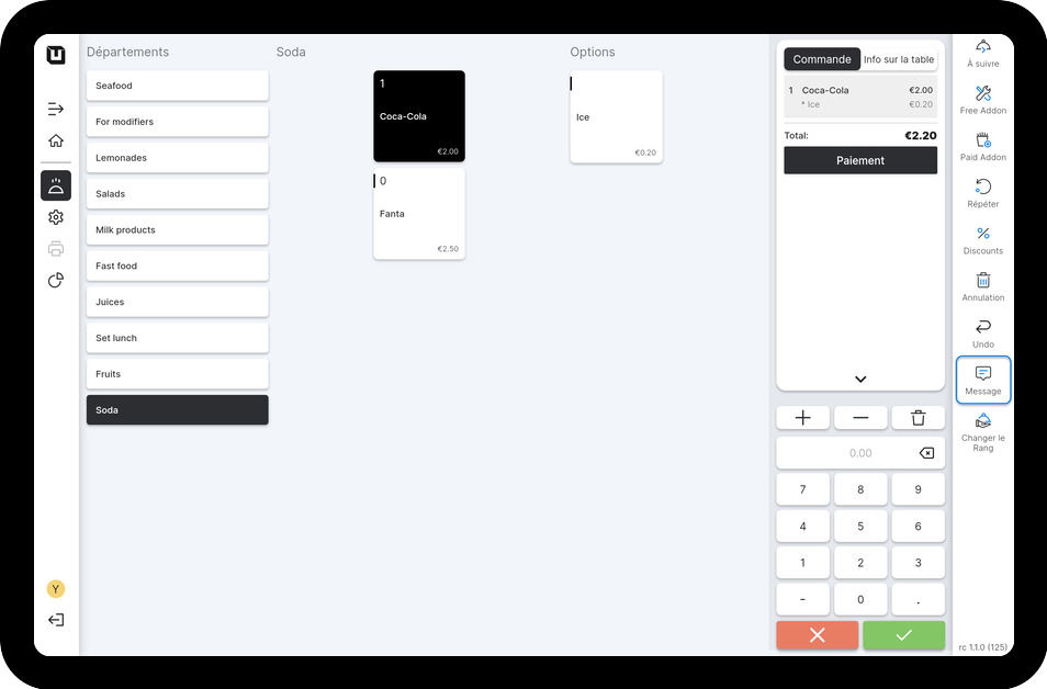 Le message d'article sera affiché dans le PDV sous l'article spécifique et imprimé sur le bon de commande afin d'informer le personnel de cuisine des exigences ou des préférences particulières du client.