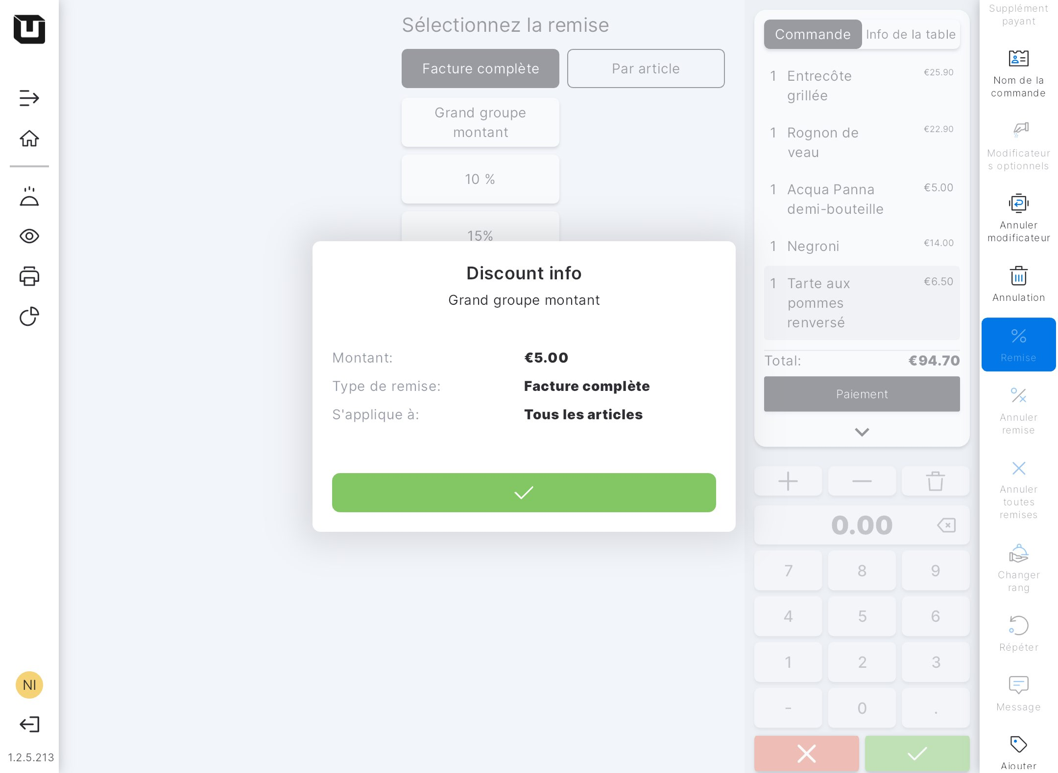 Dans le PDV, vous pouvez afficher les détails des remises qui ont été configurées dans le Back Office. De cette façon, les utilisateurs du PDV peuvent obtenir les informations nécessaires sur la remise qu'ils vont appliquer au cas où ils ne seraient pas sûrs de certains détails ou qu'ils les auraient oubliés.