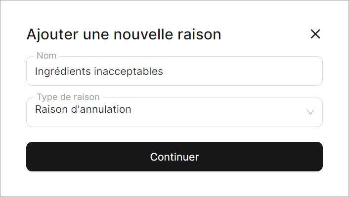 - Cliquez sur 'Ajouter une nouvelle raison'.