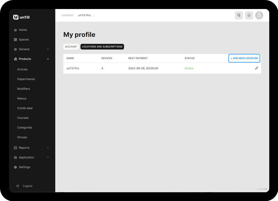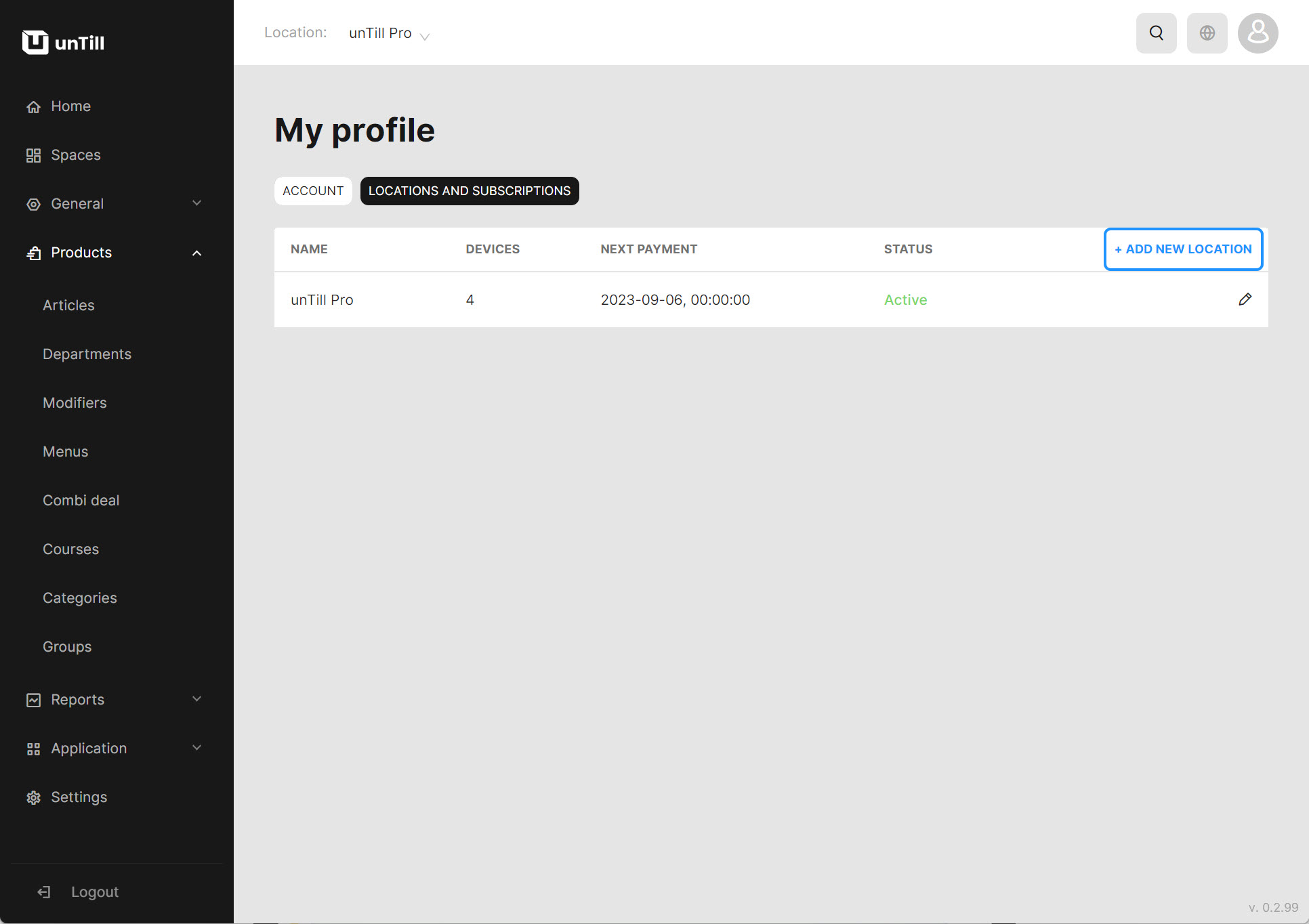Tip: To switch between different locations in your account, click on the toggle beside the current location name.