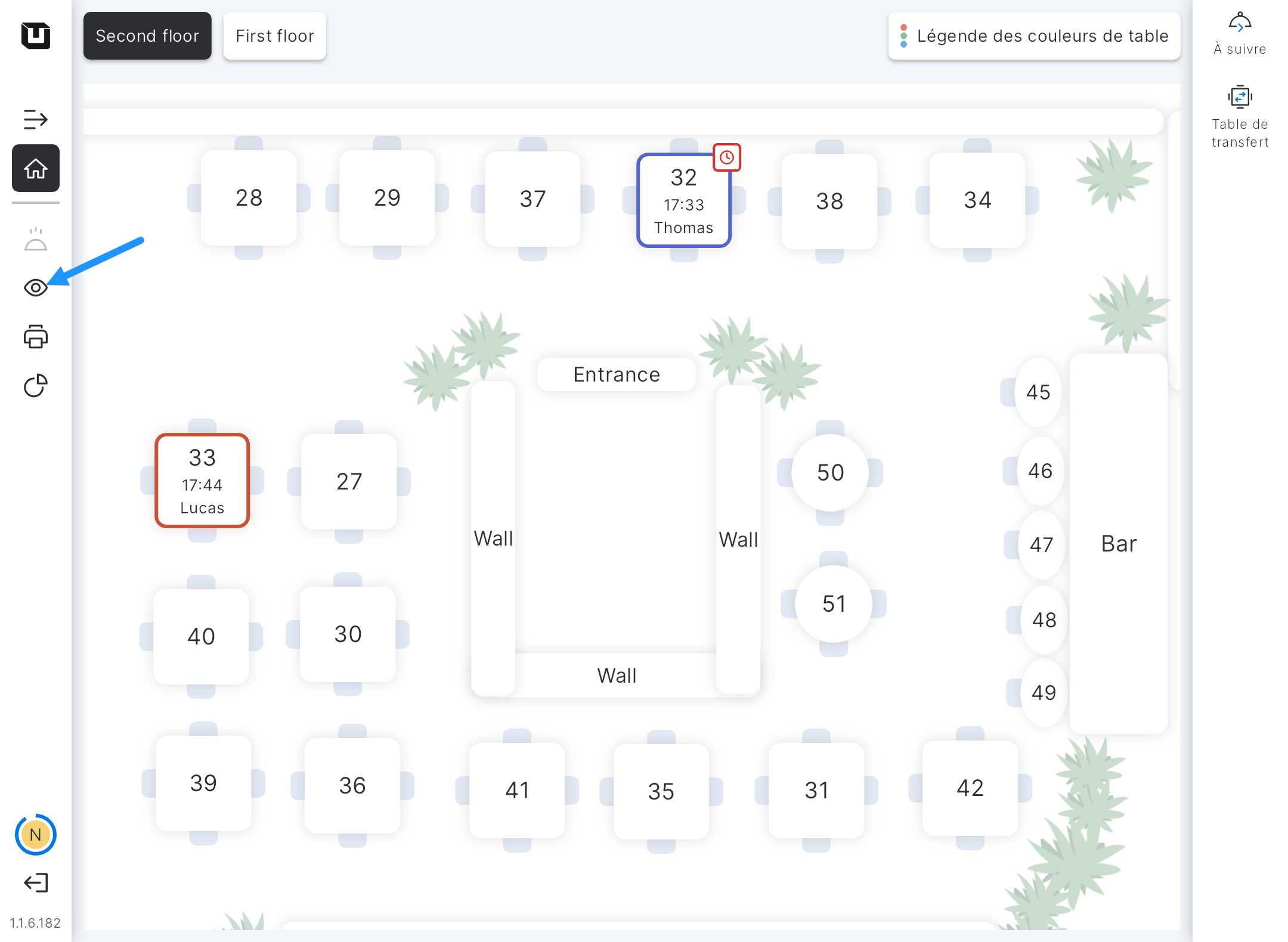 À partir de l'écran de contrôle, vous pouvez également ouvrir le tiroir-caisse en appuyant sur le bouton correspondant. Une fois le bouton enfoncé, le tiroir-caisse s'ouvre. Notez que le tiroir-caisse doit être activé pour l'écran que vous utilisez actuellement et branché sur l'imprimante de billets assignée à cet écran. Pour plus d'informations sur l'affectation du tiroir-caisse à votre écran, consultez cette page.