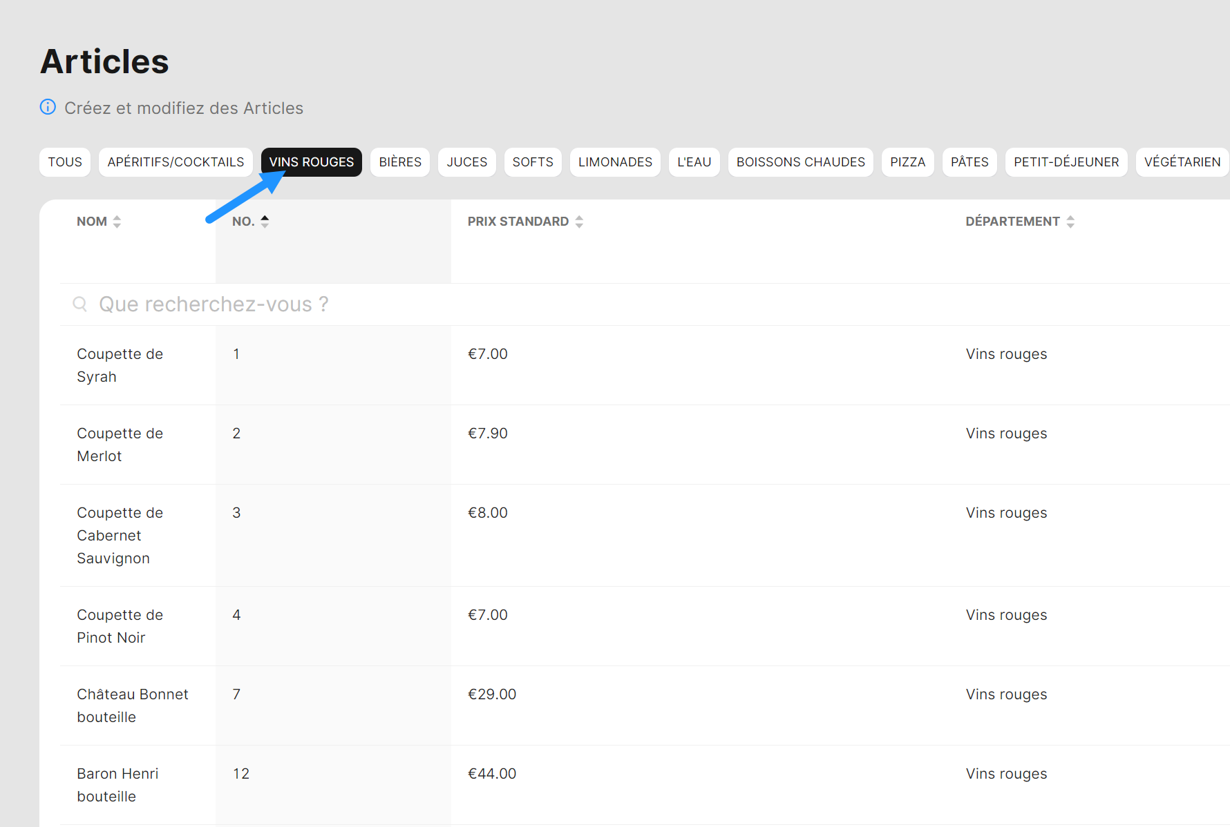 Dans la section Articles, vous pouvez modifier l'apparence de vos articles dans l'application PDV en définissant une séquence spécifique.