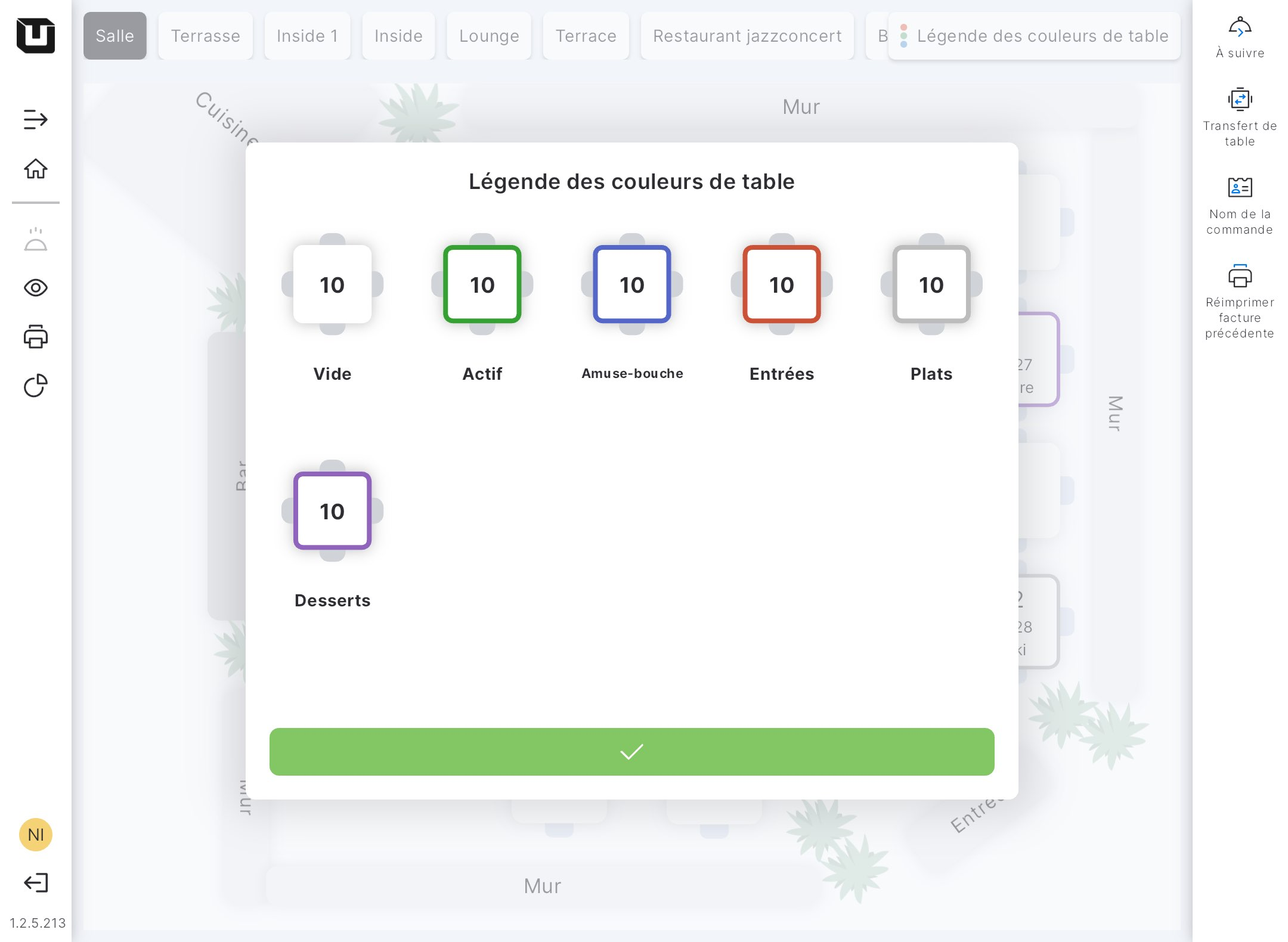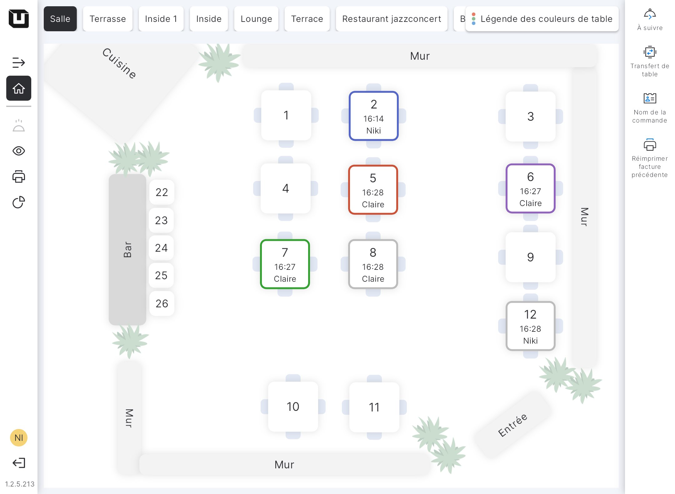 Les couleurs des Rangs sont utilisées pour distinguer un Rang d'un autre, ce qui aide les Utilisateurs du PDV dans la gestion des tables.