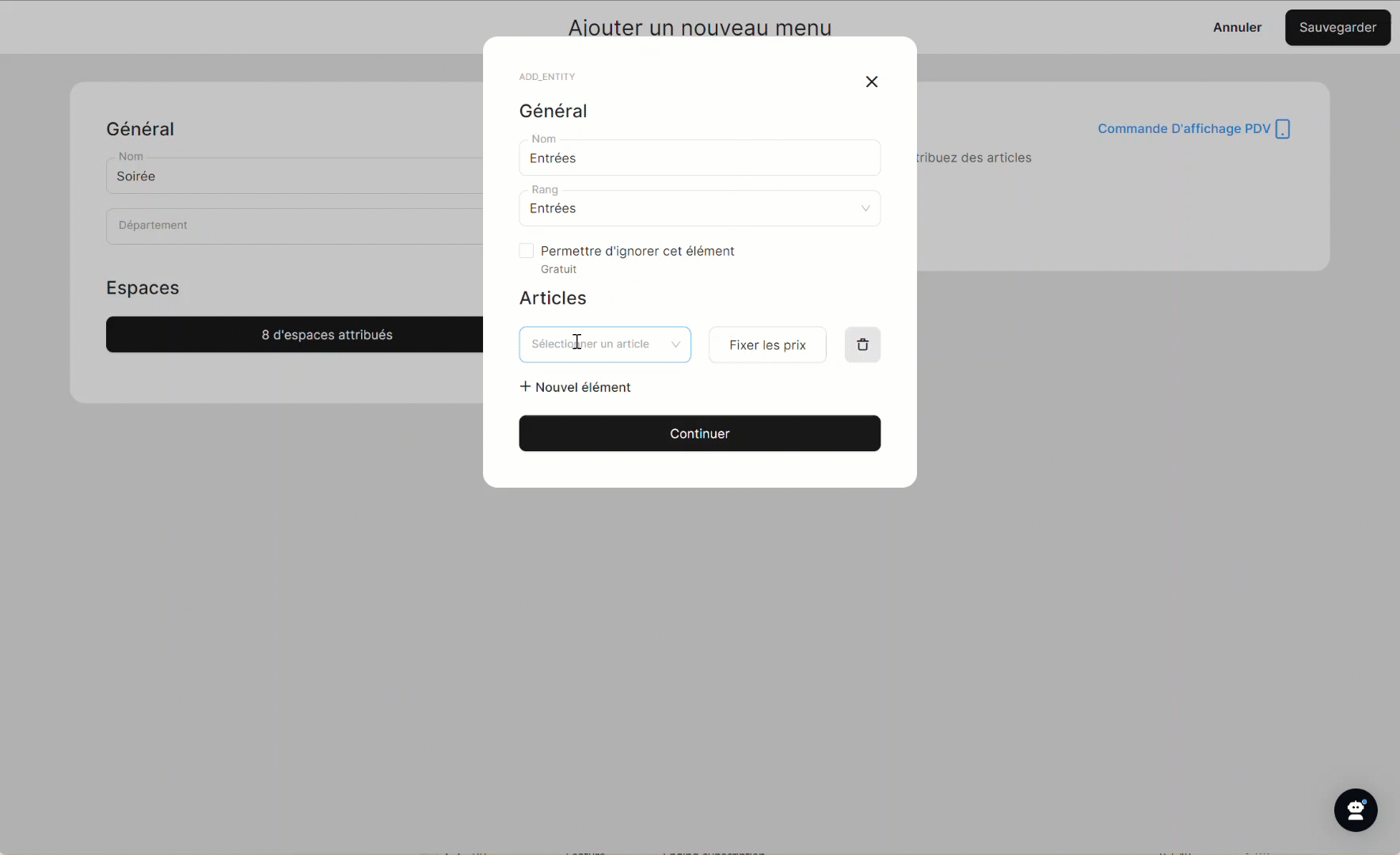 L'une des principales fonctionnalités du Back Office est la possibilité de créer et de personnaliser des Espaces. Ces Espaces fournissent une représentation visuelle de vos zones de table, où votre personnel peut accueillir efficacement les clients. En personnalisant ces Espaces, vous pouvez optimiser la disposition et l'organisation de votre restaurant.