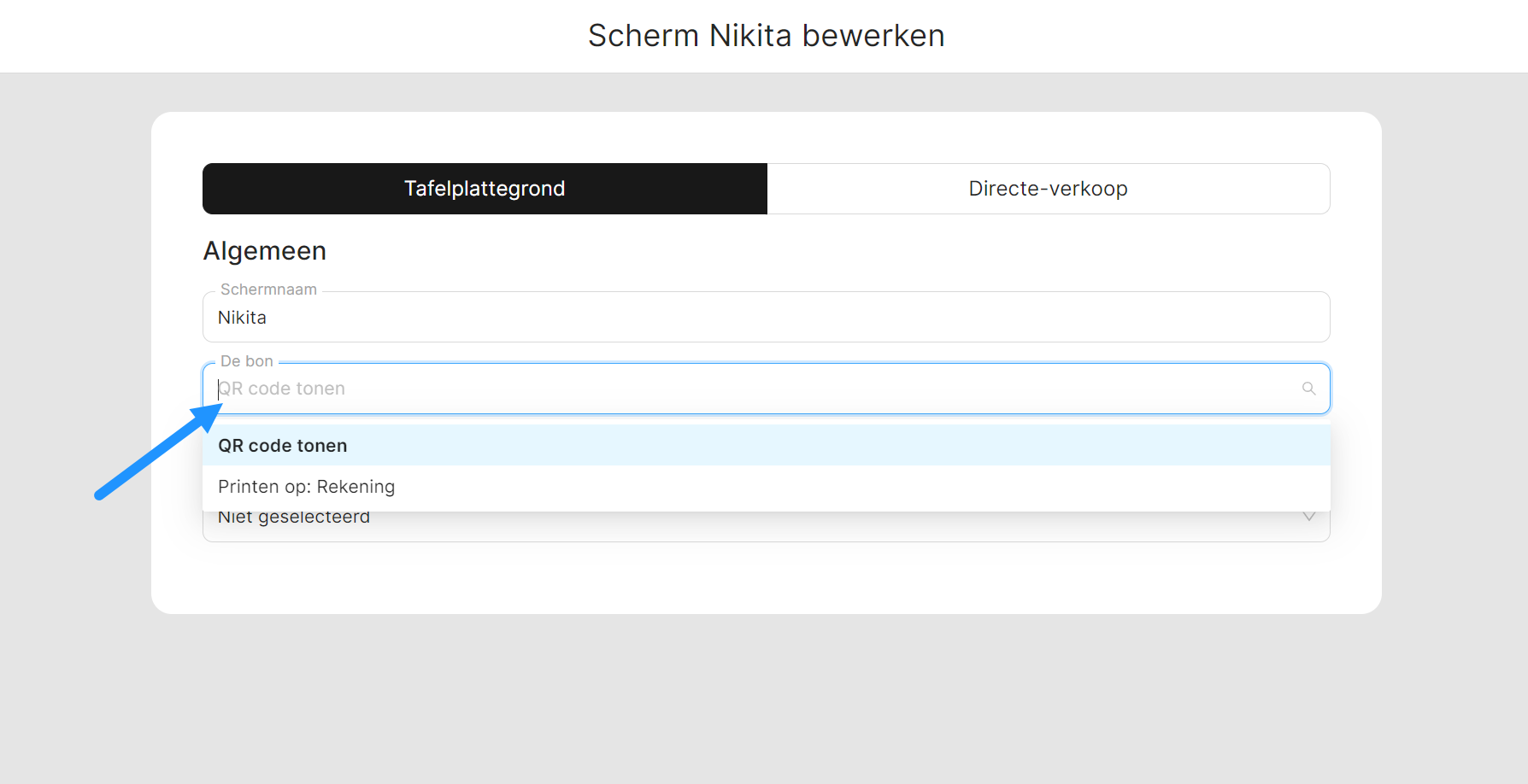 Indien nodig kunt je ook de relevante betaalterminals aan dit scherm toewijzen. Selecteer in het veld 'terminals' de gewenste terminal voor dit scherm.
