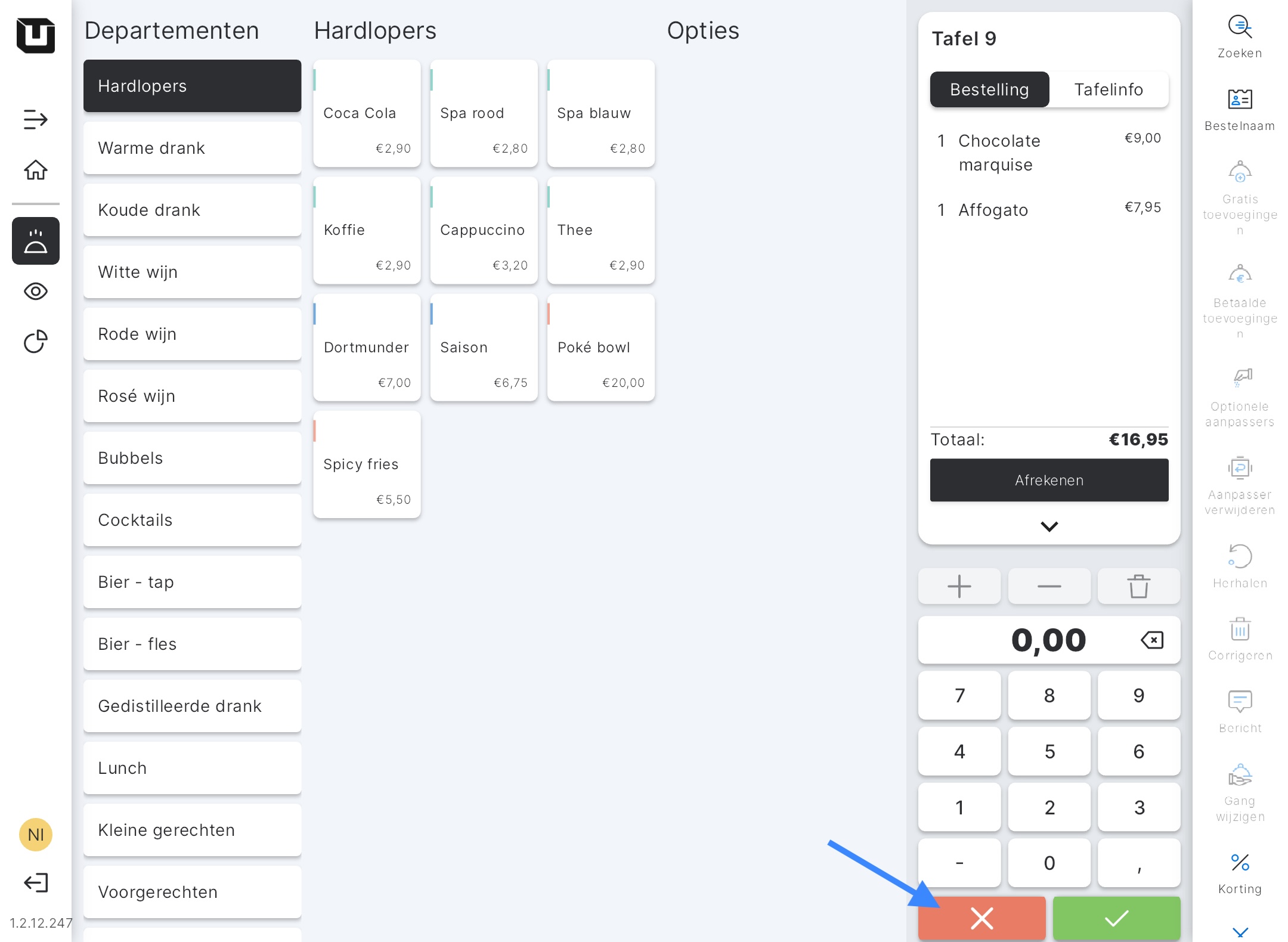 Opmerking: Als deze heropende bestelling was verdeeld in gelijke delen, zul je geen toegang hebben tot het bestelscherm en daarna de artikelen wijzigen. In deze situatie ben je alleen toegestaan om wijzigingen aan te brengen op het betaalscherm.