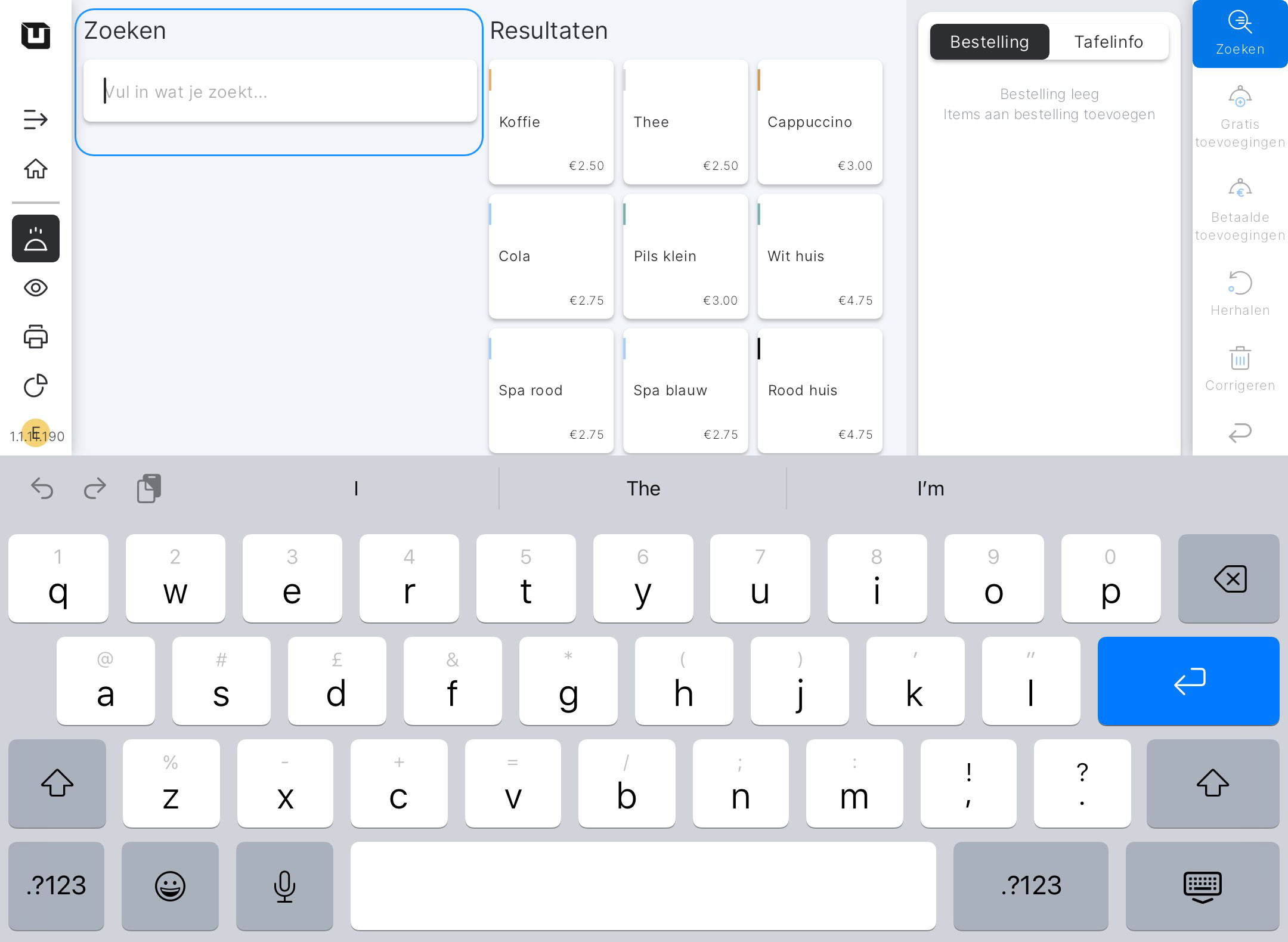 Als de 'Zoeken' knop is geactiveerd in de actiesets van de POS door de Locatie-eigenaar, wordt deze beschikbaar in de POS.