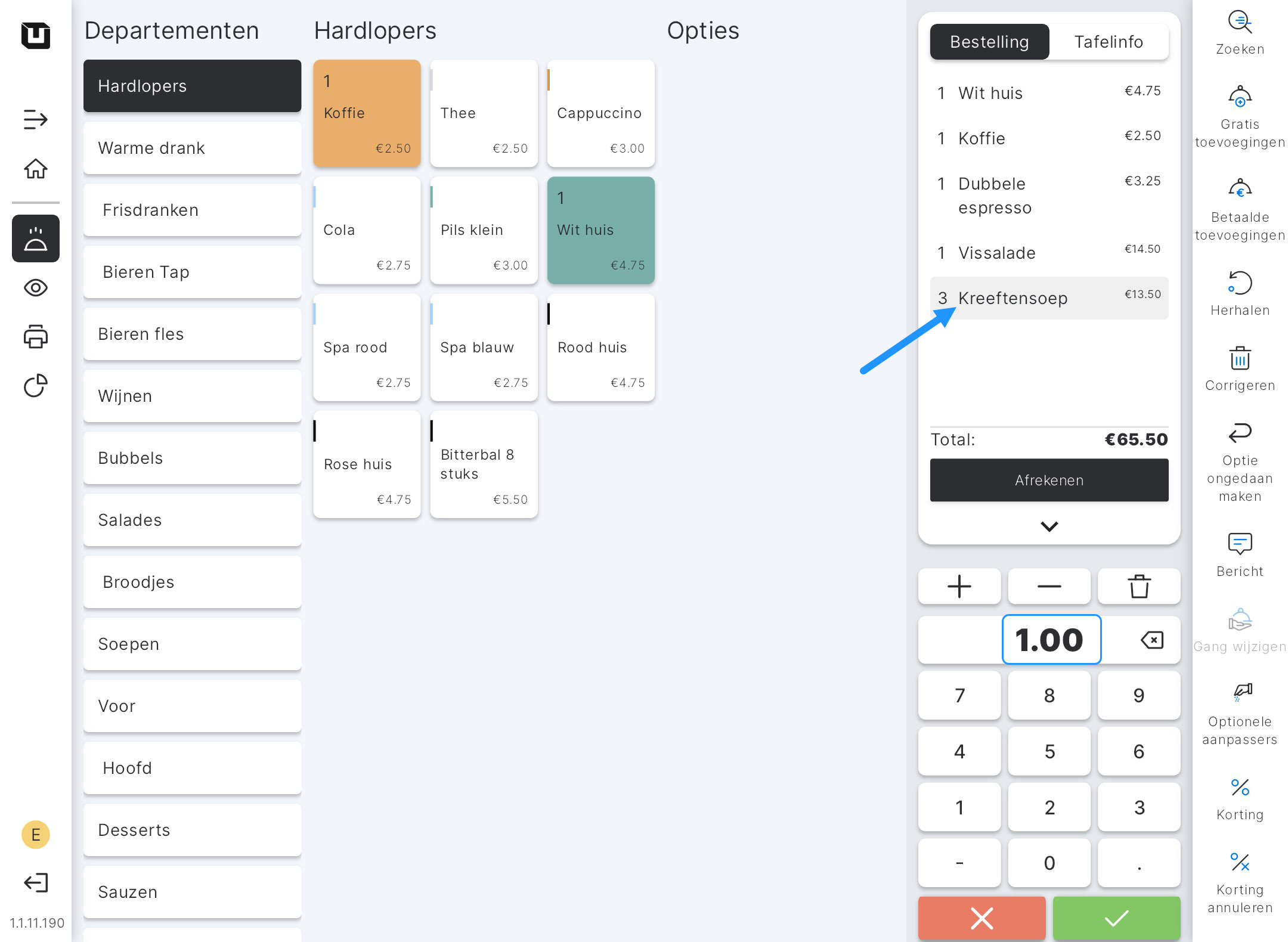 - Corrigeren tijdens bestellen