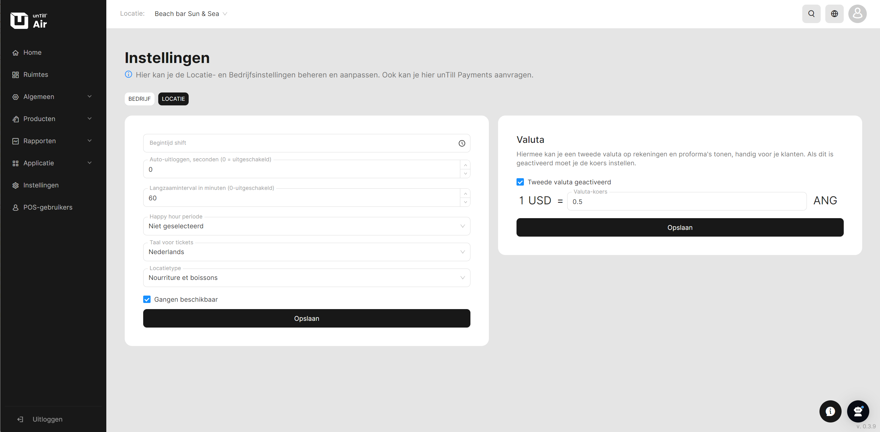 Opmerking: unTill Air is niet verantwoordelijk voor het bijwerken van de omrekeningskoers die je hebt ingevoerd. Alleen jij kunt deze wijzigen als dat nodig is.