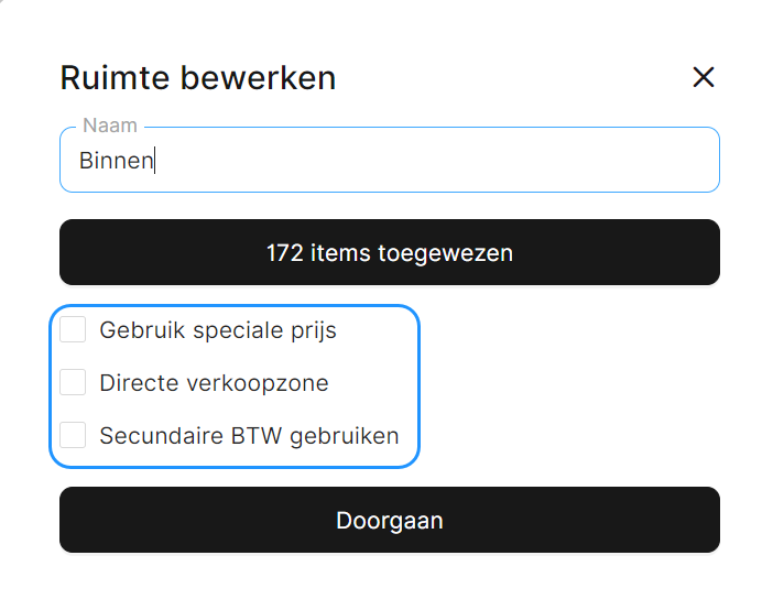 - Als je de functie 'Directe verkoopruimte' voor deze specifieke Ruimte gebruikt, vink dan het bijbehorende selectievakje aan.