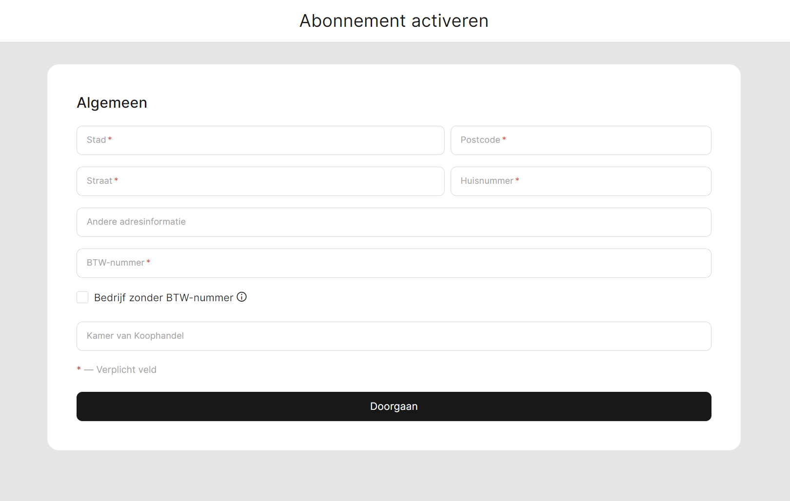 Opmerking: Als je bedrijf geen btw-nummer heeft, moet je het vakje 'Bedrijf zonder btw-nummer' aanvinken.