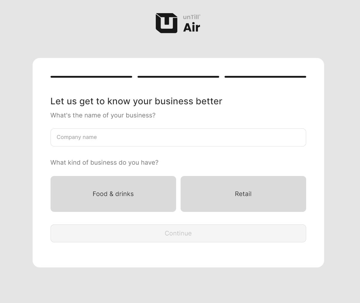 Once you're interested in unTill Air, feel free to register and get your 14-day free trial period. There is no need to enter your card details or choose a subscription model, and the sign-up process takes just a few minutes or even less.